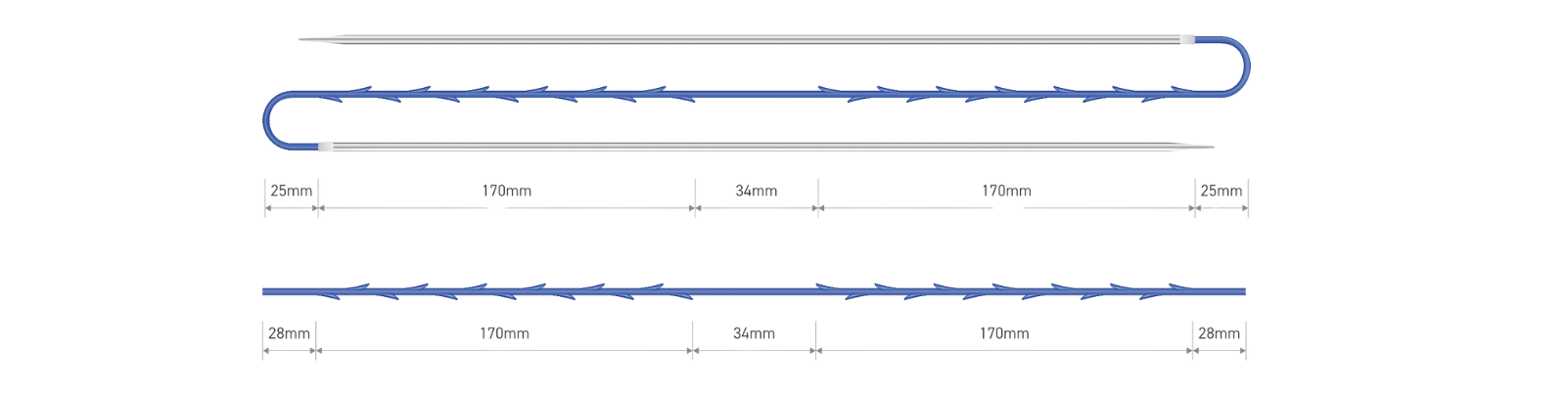 Зубці з литою структурою та розташуванням 360º вздовж нитки гарантують 3D ефект та сильну фіксацію у тканинах