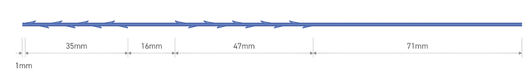 Зубці з литою структурою та розташуванням 360º вздовж нитки гарантують 3D ефект та сильну фіксацію у тканинах